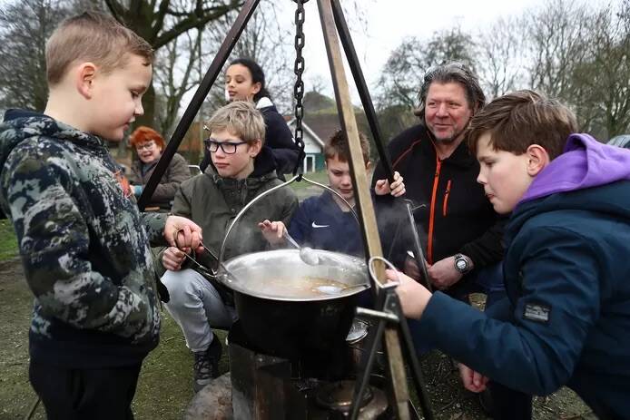 Op de locatie gaan we vuur maken en heerlijke gerechten maken zoals groentesoep, pancakes en wraps met ei en spek.